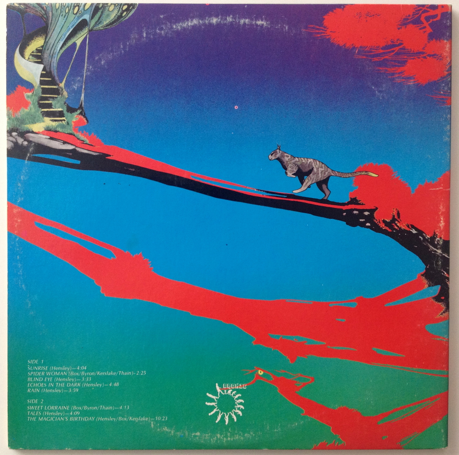 The original vinyl release was a gatefold sleeve, the front designed by Roger Dean.