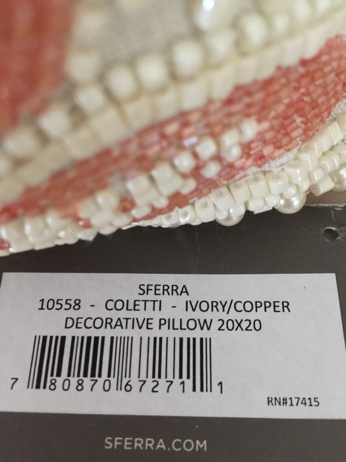SFERRA 10558 "COLETTI PAISLEY BEADED" DECO PILLOW IVORY/COPPER 20" SQ BNWT LAST