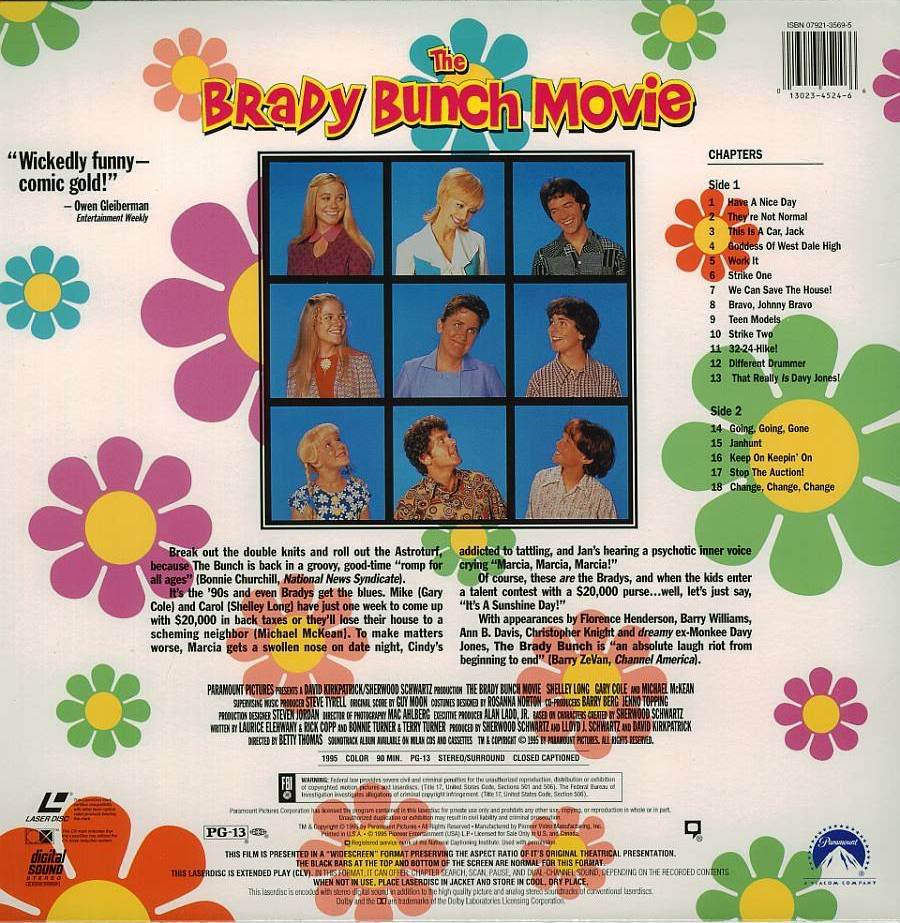This is a previously viewed LASERDISC of the rare comedy classic THE BRADY BUNCH MOVIE, staring: