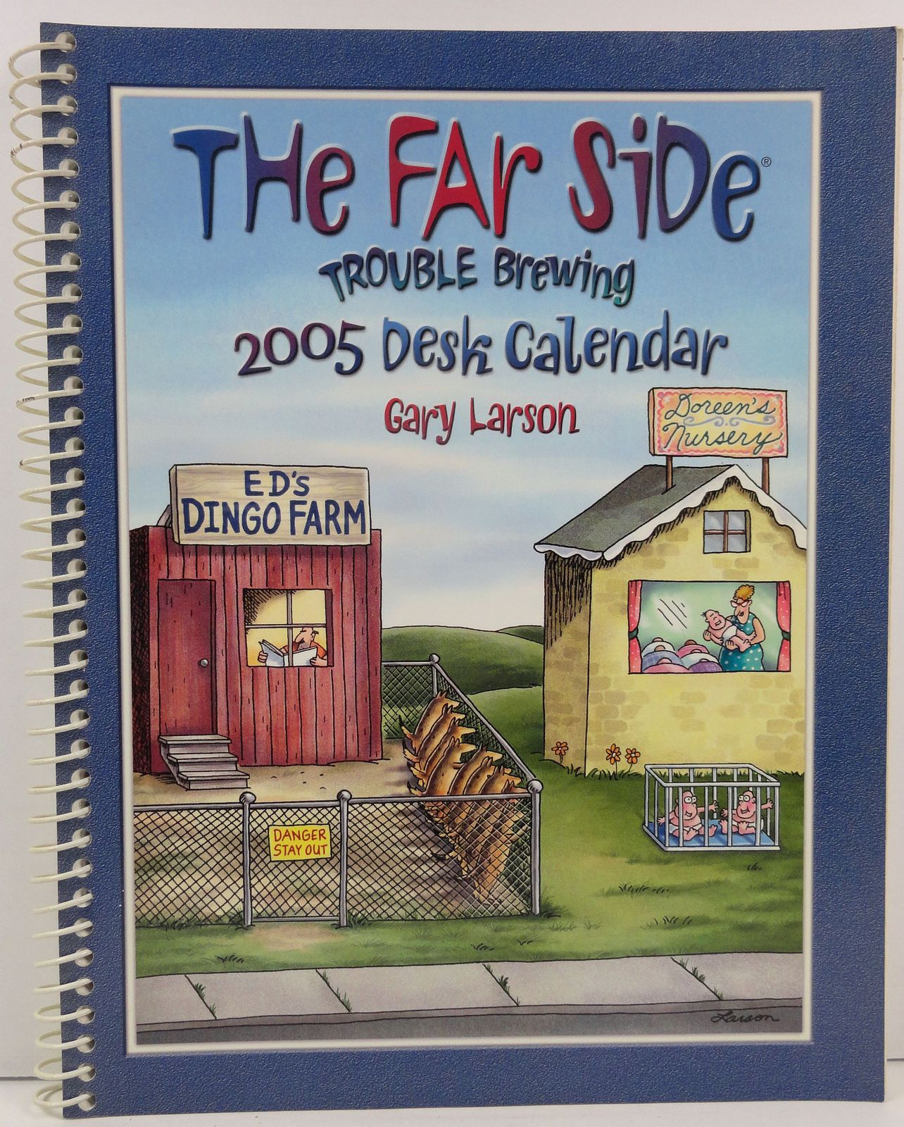"The Far Side Trouble Brewing 2005 Desk Calendar is positively bursting with severely twisted scenarios like these, presented one per week--which gives you just enough time to appreciate the perilous predicament of the future victims, but mercifully move on before dwelling on the real catastrophe about to strike. Professor Harold Hill would be so proud. (#01)