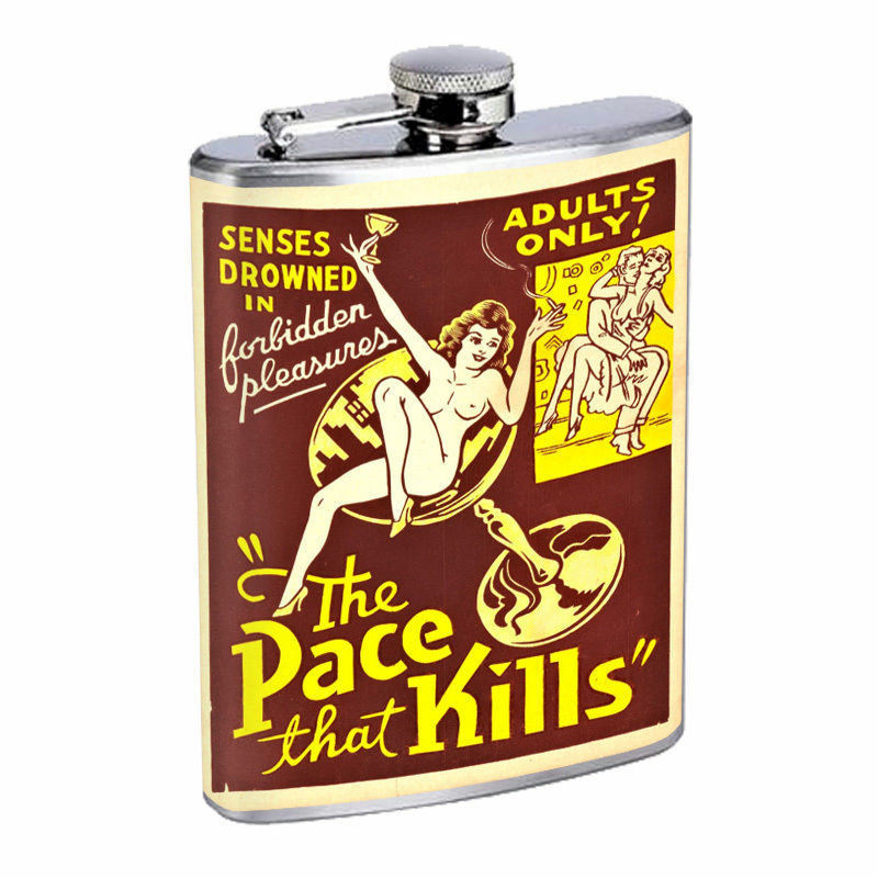 Vintage Poster Pace Kills D300 Flask 8oz Stainless Steel Hip Drinking Whiskey
