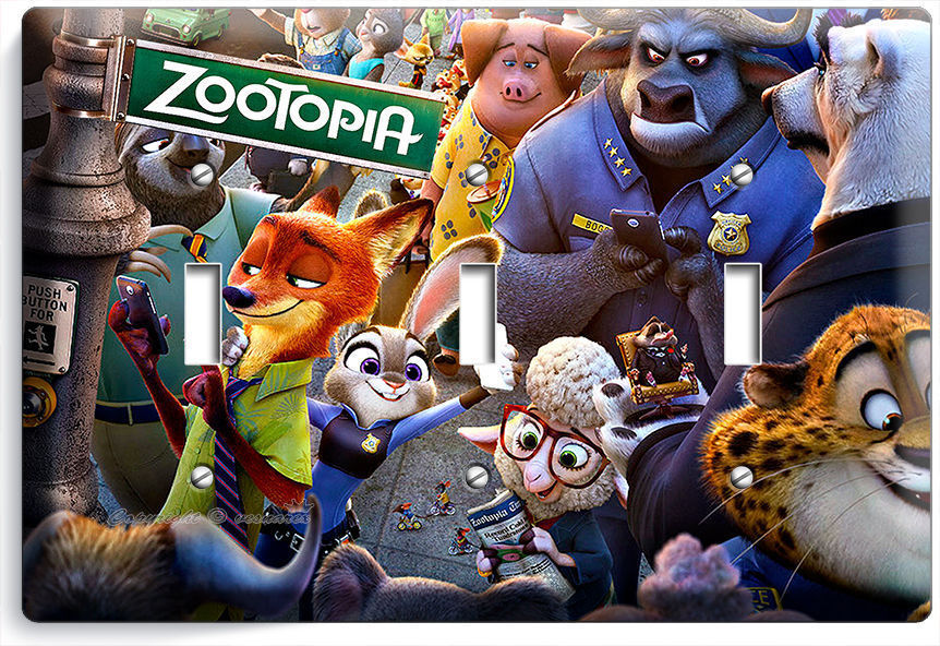 ZOOTOPIA FOX NICK JUDY BUNNY SLOTH FLASH TRIPLE LIGHT SWITCH WALL PLATE COVER