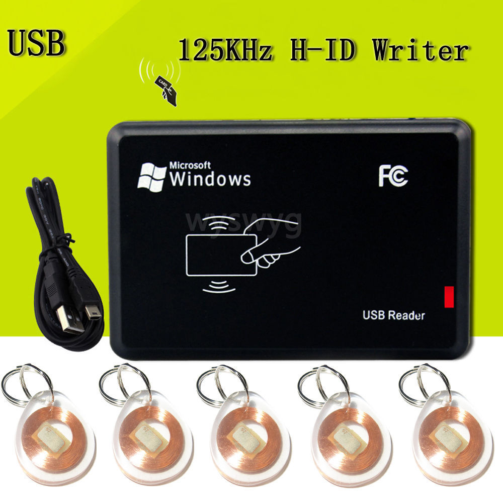 125KHz H-ID Reader/Writer R/W Wiegand26-37 Free Software + 5xTransparent Keyfob