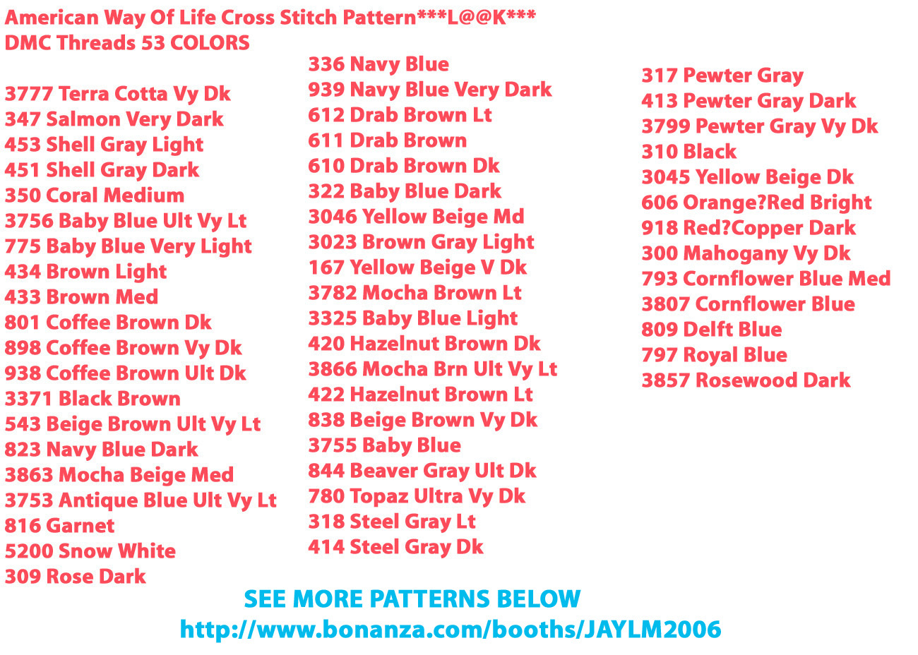 American Way Of Life Cross Stitch Pattern***L@@K***