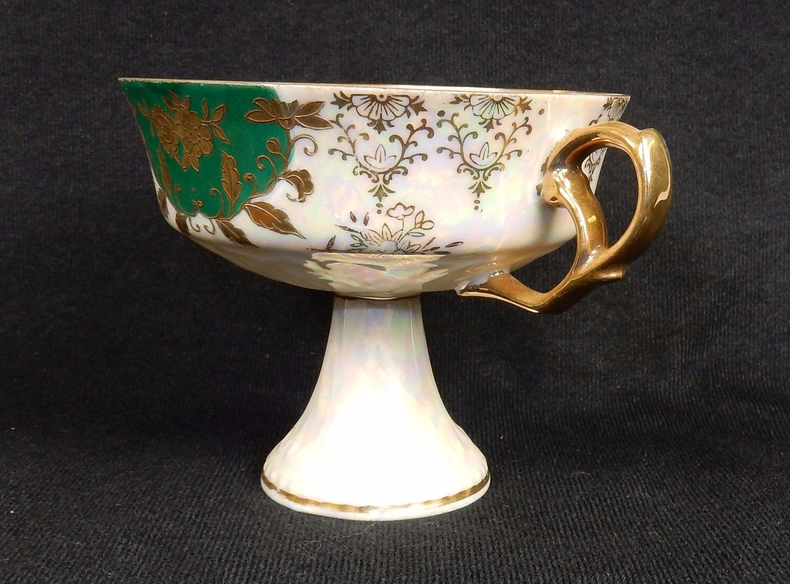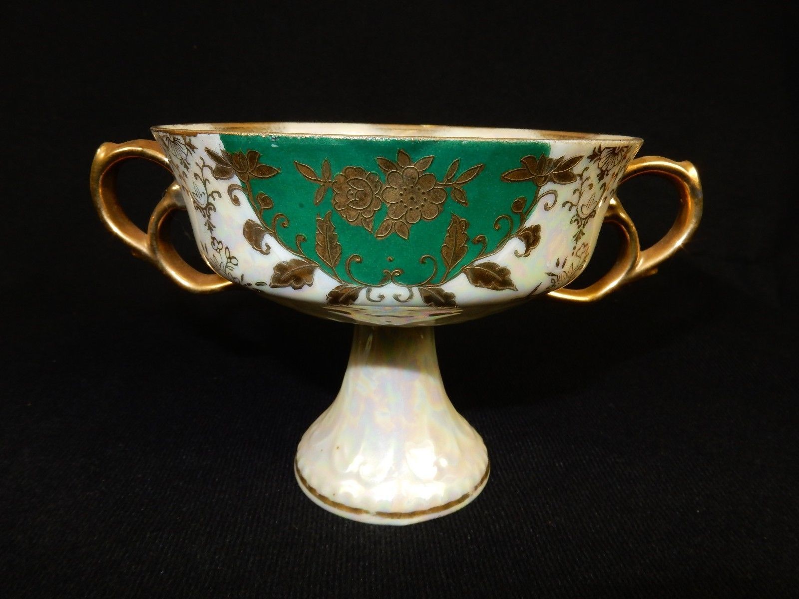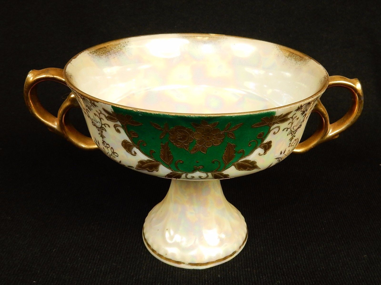 Vintage Pearlescent Chalice/Compote/Mint Dish, Green & Gold, Royal Sealy Japan