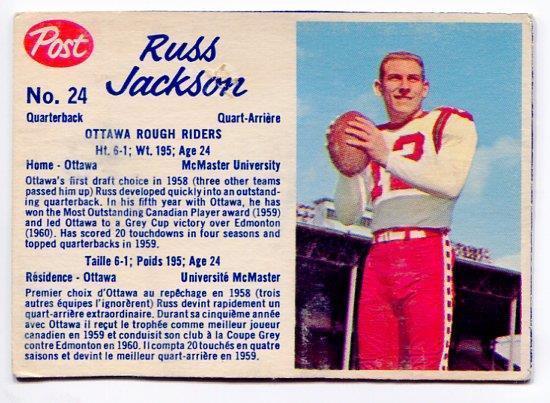 1962 Post Cereal Russ Jackson Card #24 Ottawa Rough Riders