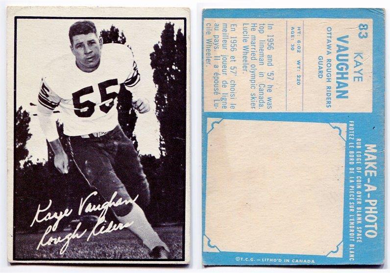 1961 Topps Kaye Vaughan Card #83 Ottawa Rough Riders University of Tulsa