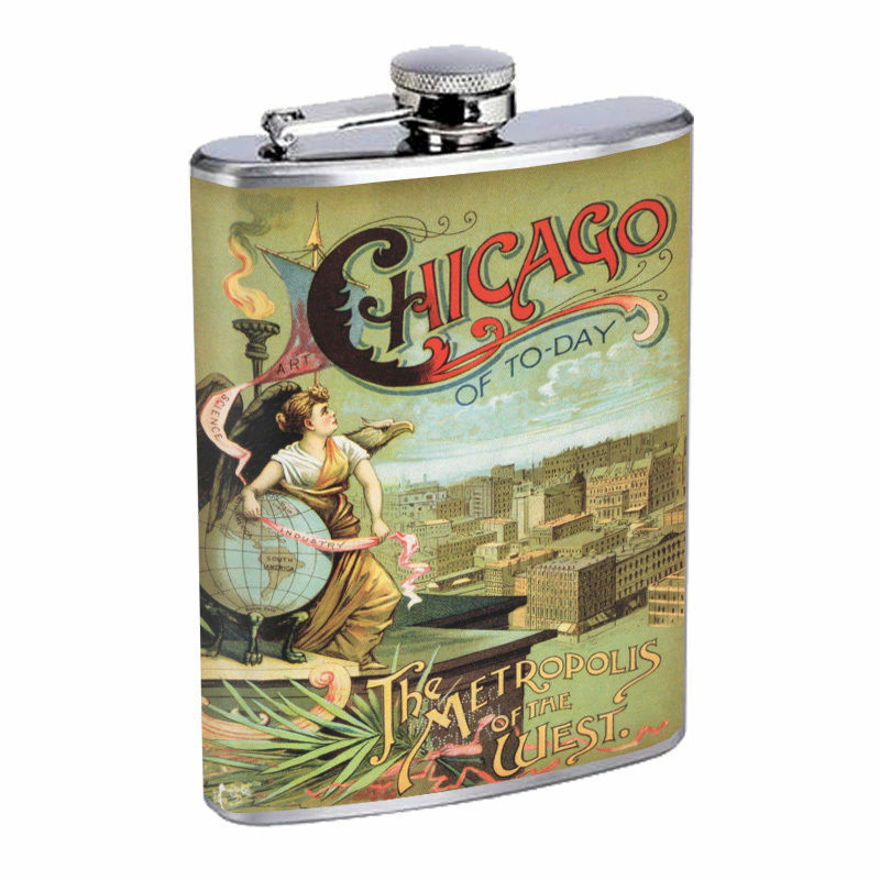 World's Fair Chicago Poster D6 Flask 8oz Stainless Steel Hip Drinking Whiskey