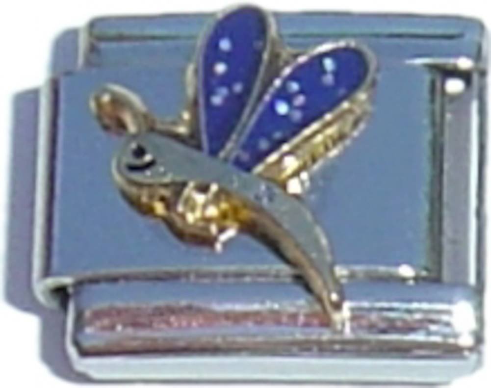 Dragonfly With Blue Wings Italian Charm Bracelet Jewelry Link. This hiqh quality Italian Charm is compatible with our entire Italian Charm line as well as with all other major brands. Start with a few unique designs and build up to a full bracelet of unique charms over time. These charms and the bracelets they create make great gifts for a birthday, graduation, Mother's Day, and more.