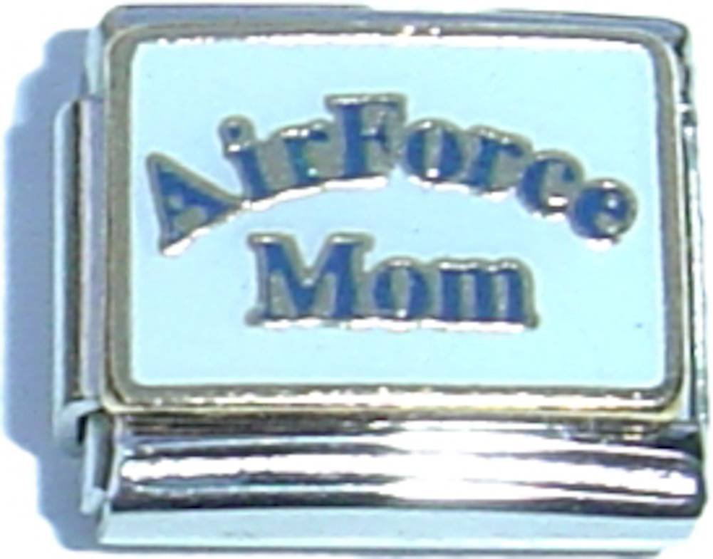 Air Force Mom Italian Charm Bracelet Jewelry Link. This hiqh quality Italian Charm is compatible with our entire Italian Charm line as well as with all other major brands. Start with a few unique designs and build up to a full bracelet of unique charms over time. These charms and the bracelets they create make great gifts for a birthday, graduation, Mother's Day, and more.