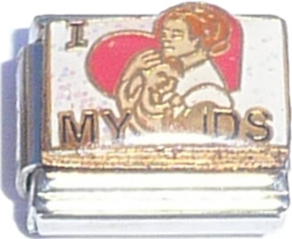 I Love My Kids On White Italian Charm Bracelet Jewelry Link. This hiqh quality Italian Charm is compatible with our entire Italian Charm line as well as with all other major brands. Start with a few unique designs and build up to a full bracelet of unique charms over time. These charms and the bracelets they create make great gifts for a birthday, graduation, Mother's Day, and more.