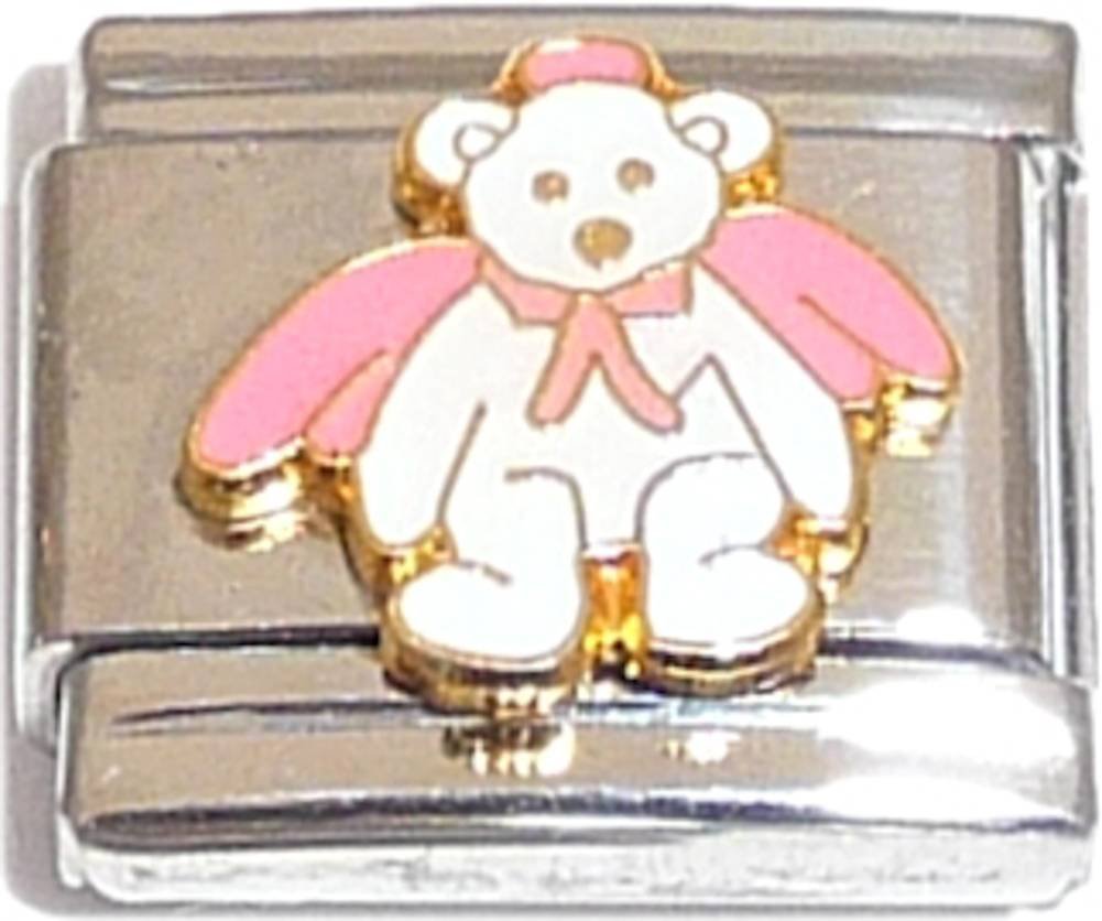 Bear With Pink Wings Italian Charm Bracelet Jewelry Link. This hiqh quality Italian Charm is compatible with our entire Italian Charm line as well as with all other major brands. Start with a few unique designs and build up to a full bracelet of unique charms over time. These charms and the bracelets they create make great gifts for a birthday, graduation, Mother's Day, and more.