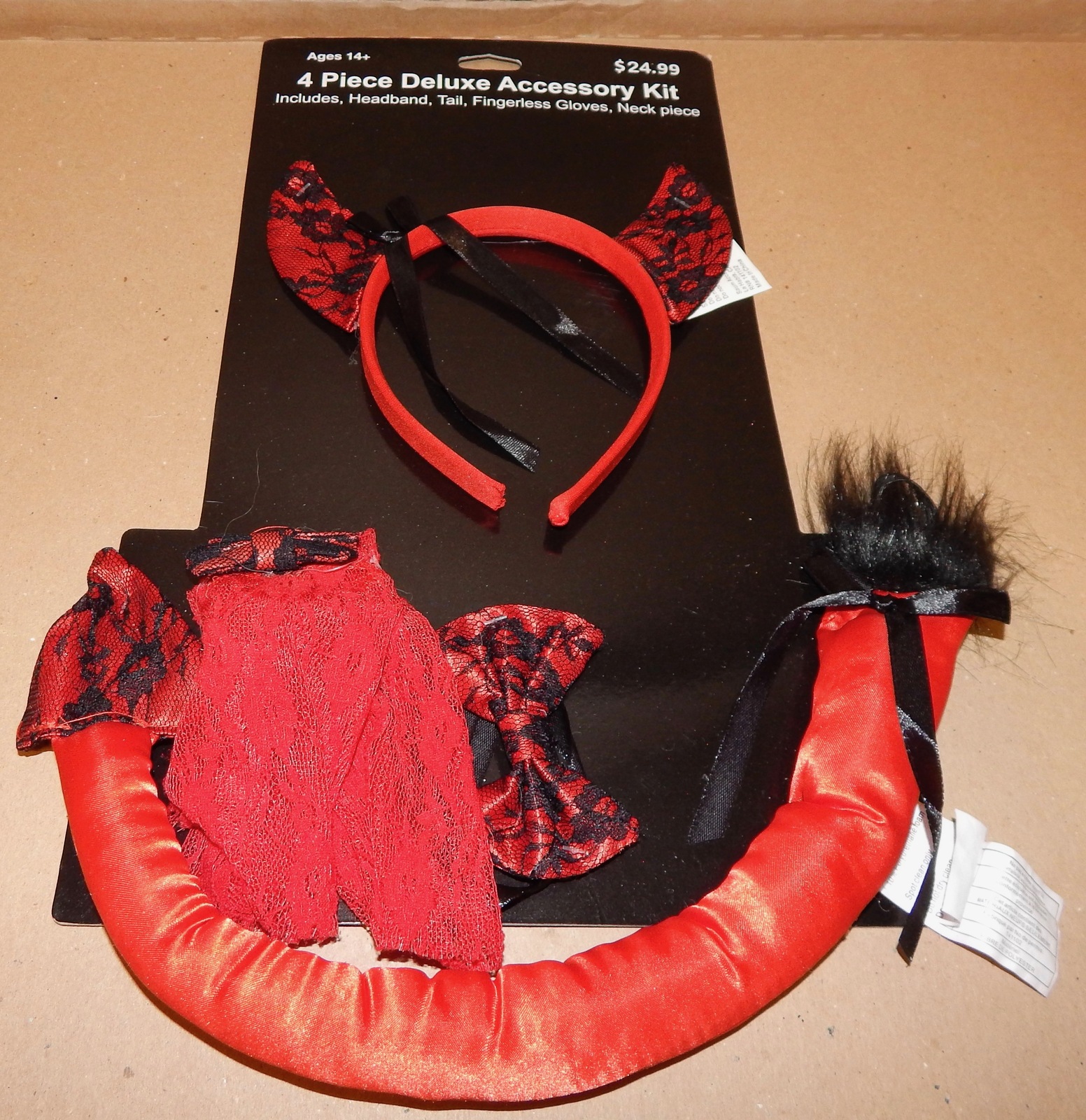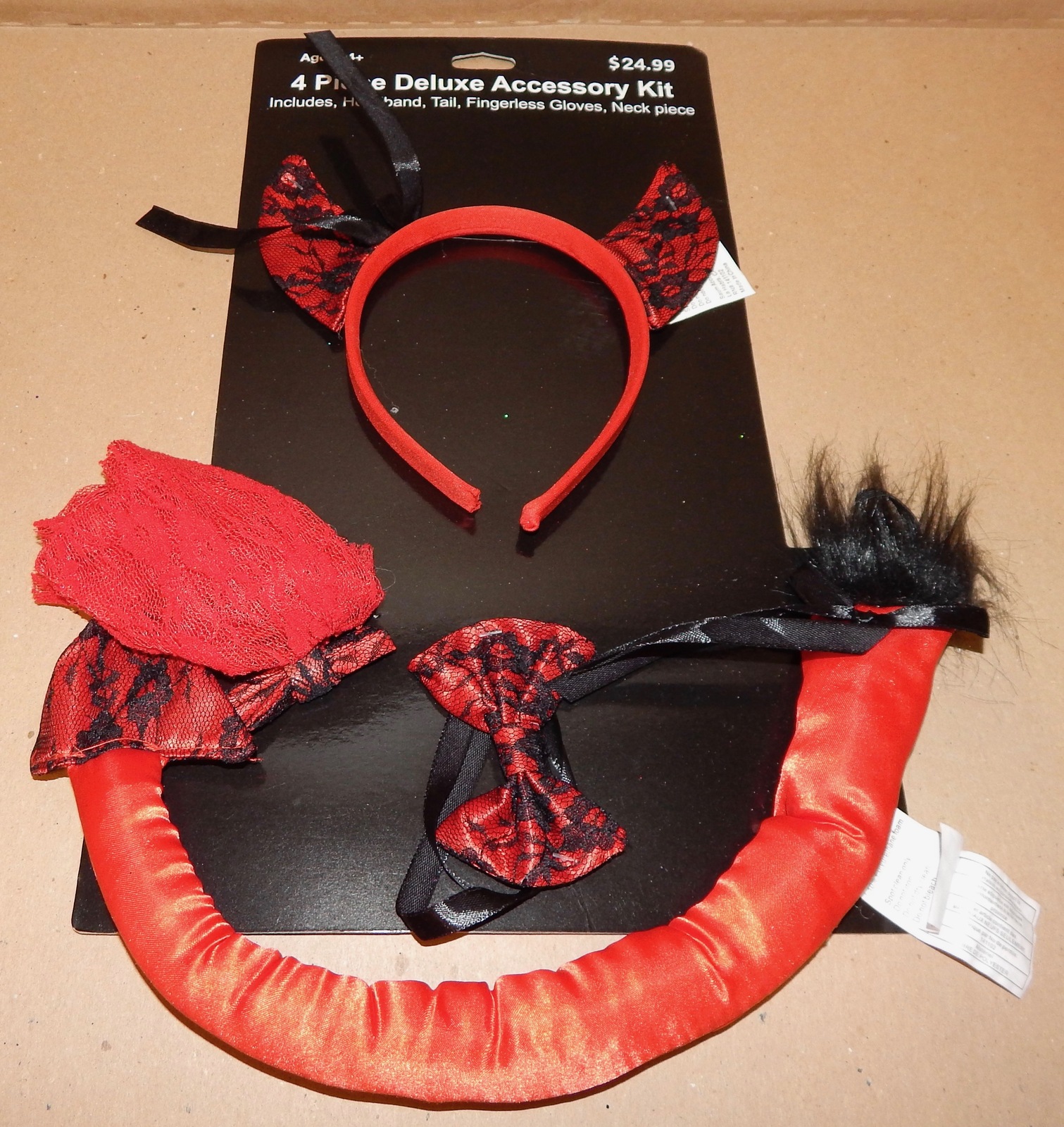 Halloween Costume 4 pc Deluxe Accessory Kit Red Devil 118M.
