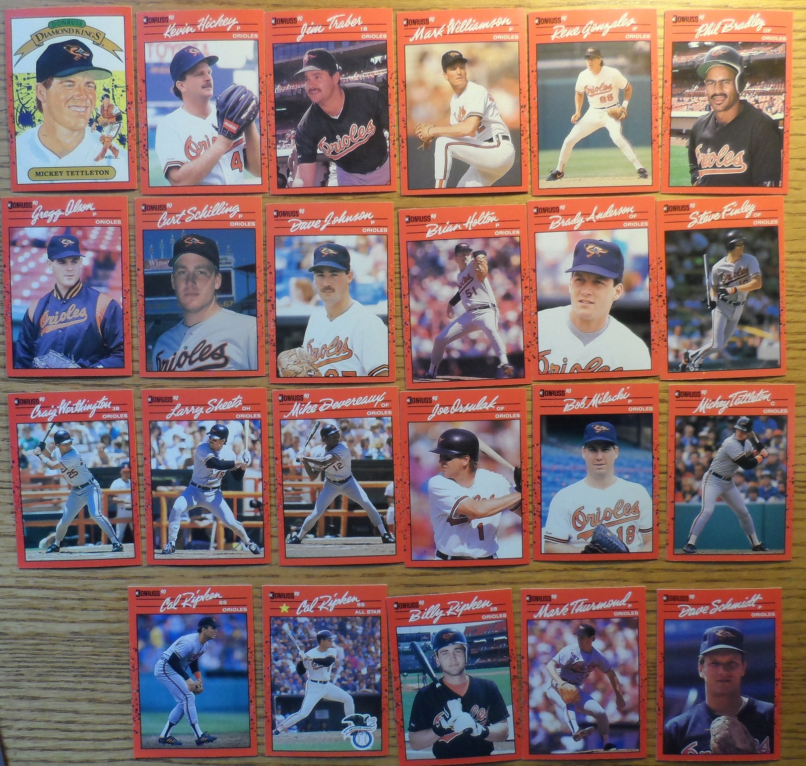 BALTIMORE ORIOLES 23pc 1990 Donruss Card Lot 2 Cal Ripken + Curt Schilling vg