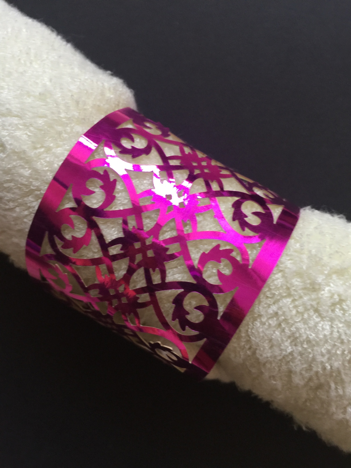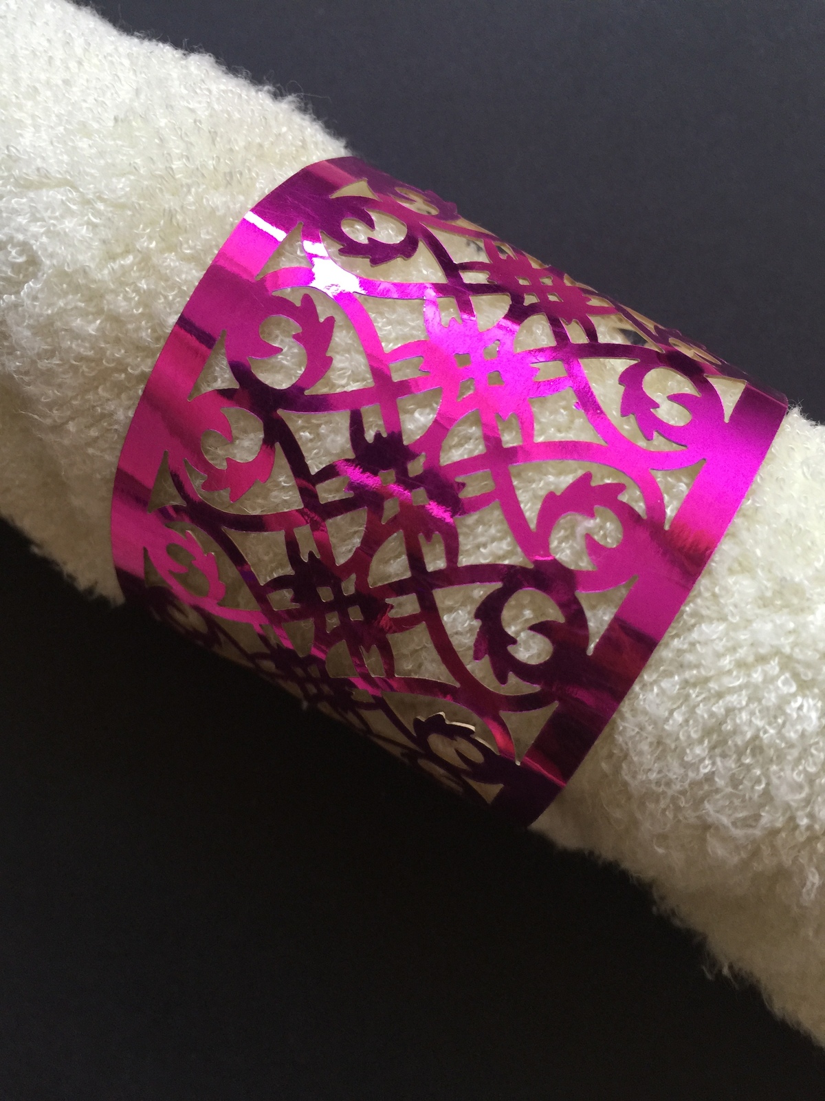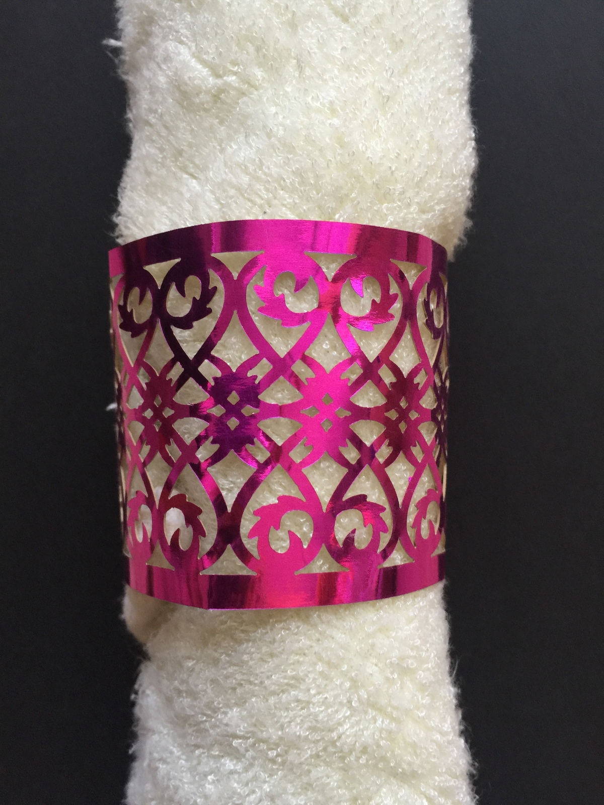 100pcs Metallic Paper Hot Pink Wedding Party Decoration,Laser Cut Napkin Rings