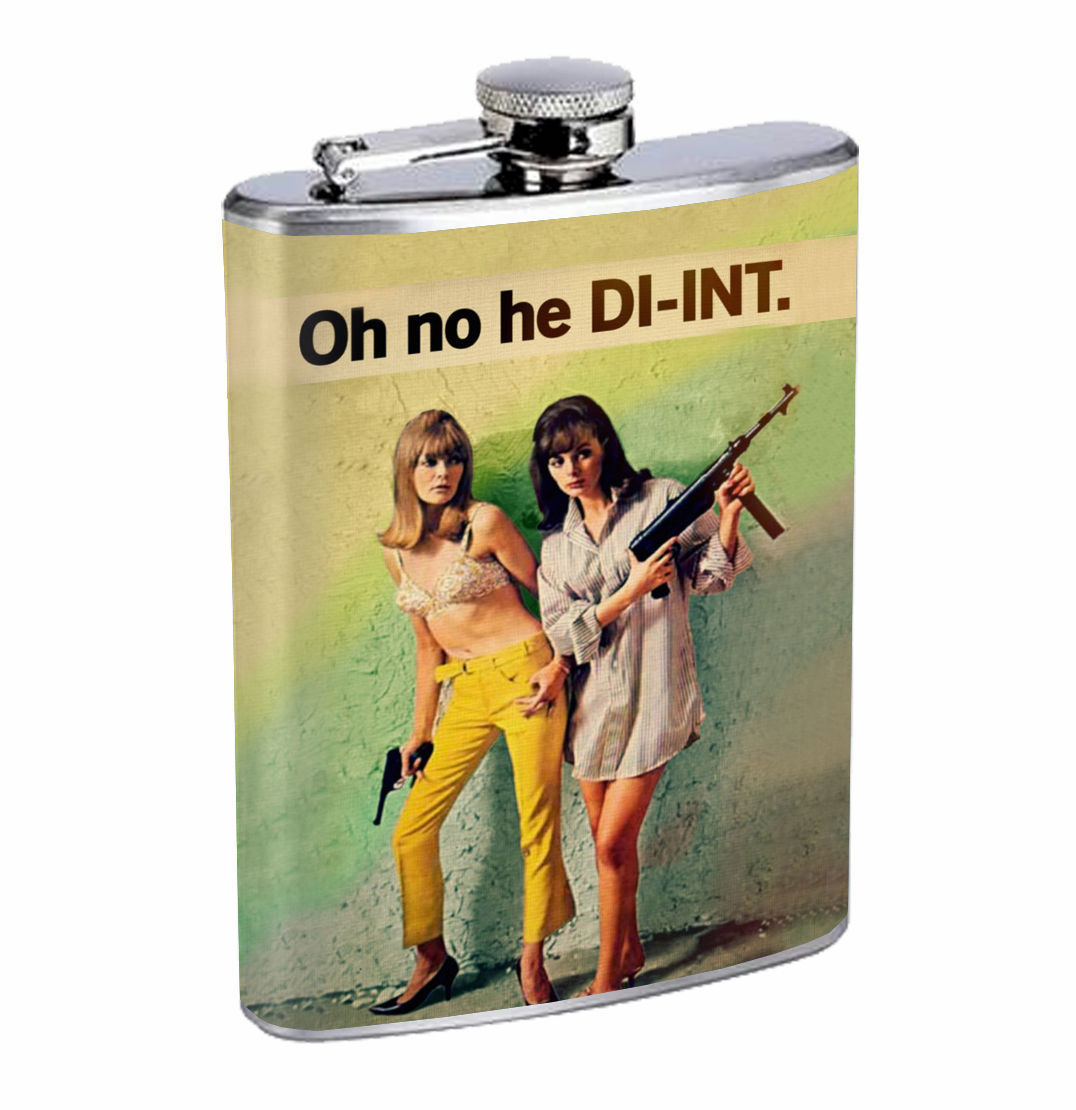 70's Era Chicks with Guns 01R Flask 8oz Stainless Steel Hip Drinking Whiskey