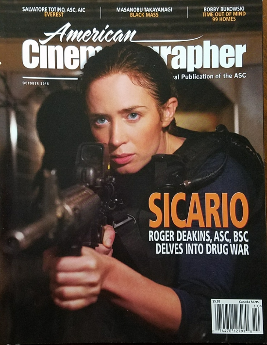 American Cinematographer, International Journal of Motion Imaging October 2015 issue: SICARIO - Roger Deakins, ASC, BSC delves into drug war.