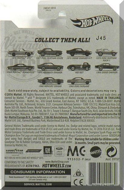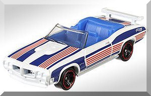 Description: Pearl White, w/Blue interior, Red and dark blue stripes on sides, hood trunk. Silver Hot Wheels logo on rear quarters. Silver "GTO" on front fenders, Chrome Thailand Base, w/BlkMC5โs. Walmart Exclusive. 040717-040717P-D13