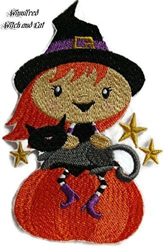 Winifred Witch and Cat Absolutely superior quality patches which can be ironed or sewed on any garment. This patch is made of the finest embroidery thread and cotton base. Finest quality money can buy. Steps to iron it on the garment are listed below: 1. Set Iron to Cotton 400 degrees, for one minute. 2. Thoroughly iron area of garment where patch will be placed. 3. Spray water lightly on the back. Position your patch where you desire, Place it on garment, embroidery facing up. 4. Place cloth or light towel over patch and using a slow circular motion, press firmly for 30 seconds. 5. Turn garment inside out, and iron the back of the the patch for 30 seconds. 6. Let cool for one minute. If edge of patch can be lifted, repeat step 5.