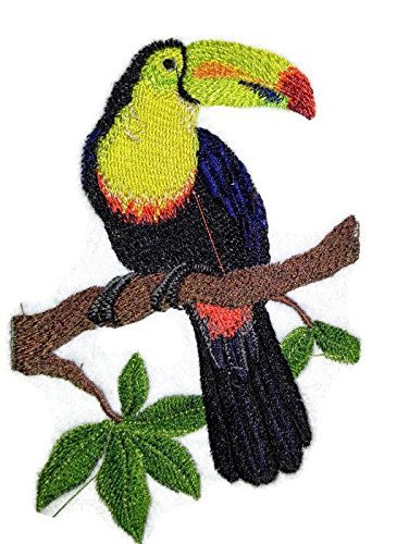 Keel Billed Toucan embroidery patch. Absolutely superior quality patches which can be ironed or sewed on any garment. This patch is made of the finest embroidery thread and cotton base. Finest quality money can buy. Steps to iron it on the garment are listed below: 1. Set Iron to Cotton 400 degrees, for one minute. 2. Thoroughly iron area of garment where patch will be placed. 3. Spray water lightly on the back. Position your patch where you desire, Place it on garment, embroidery facing up. 4. Place cloth or light towel over patch and using a slow circular motion, press firmly for 30 seconds. 5. Turn garment inside out, and iron the back of the the patch for 30 seconds. 6. Let cool for one minute. If edge of patch can be lifted, repeat step 5.
