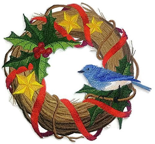 Blue Bird Wreath ,Absolutely superior quality patches which can be ironed or sewed on any garment. This patch is made of the finest embroidery thread and cotton base. Finest quality money can buy. Steps to iron it on the garment are listed below: 1. Set Iron to Cotton 400 degrees, for one minute. 2. Thoroughly iron area of garment where patch will be placed. 3. Spray water lightly on the back. Position your patch where you desire, Place it on garment, embroidery facing up. 4. Place cloth or light towel over patch and using a slow circular motion, press firmly for 30 seconds. 5. Turn garment inside out, and iron the back of the the patch for 30 seconds. 6. Let cool for one minute. If edge of patch can be lifted, repeat step 5.