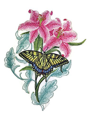 Product description: Swallowtail Butterfly And Lilies embroidery patch. Absolutely superior quality patches which can be ironed or sewed on any garment. This patch is made of the finest embroidery thread and cotton base. Finest quality money can buy. Steps to iron it on the garment are listed below: 1. Set Iron to Cotton 400 degrees, for one minute. 2. Thoroughly iron area of garment where patch will be placed. 3. Spray water lightly on the back. Position your patch where you desire, Place it on garment, embroidery facing up. 4. Place cloth or light towel over patch and using a slow circular motion, press firmly for 30 seconds. 5. Turn garment inside out, and iron the back of the the patch for 30 seconds. 6. Let cool for one minute. If edge of patch can be lifted, repeat step 5.