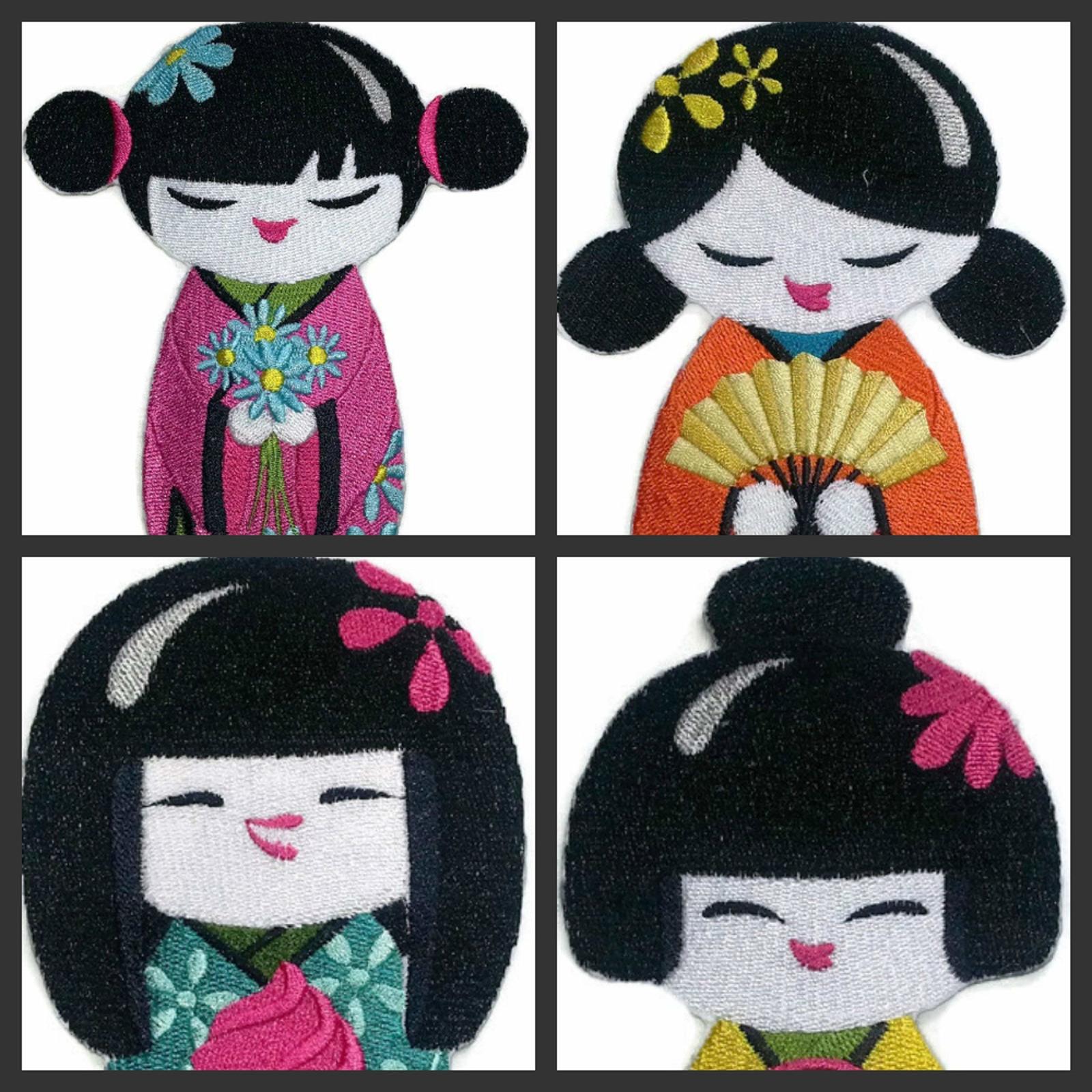 Kokeshi And Flower Bouquet embroidery patch with iron on or sew on capability.Absolutely superior quality patches which can be ironed or sewed on any garment. This patch is made of the finest embroidery thread and cotton base. Finest quality money can buy. Steps to iron it on the garment are listed below: 1. Set Iron to Cotton 400 degrees, for one minute. 2. Thoroughly iron area of garment where patch will be placed. 3. Spray water lightly on the back. Position your patch where you desire, Place it on garment, embroidery facing up. 4. Place cloth or light towel over patch and using a slow circular motion, press firmly for 30 seconds. 5. Turn garment inside out, and iron the back of the the patch for 30 seconds. 6. Let cool for one minute. If edge of patch can be lifted, repeat step .