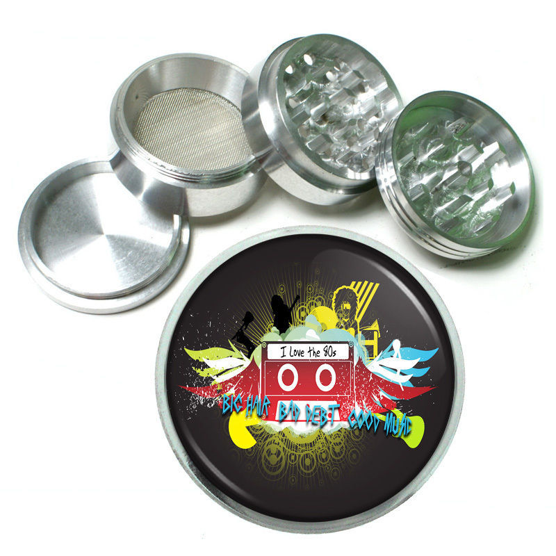 80's Theme D11 Aluminum Herb Grinder 2.5" 63mm 4 Piece Big Hair Good Music