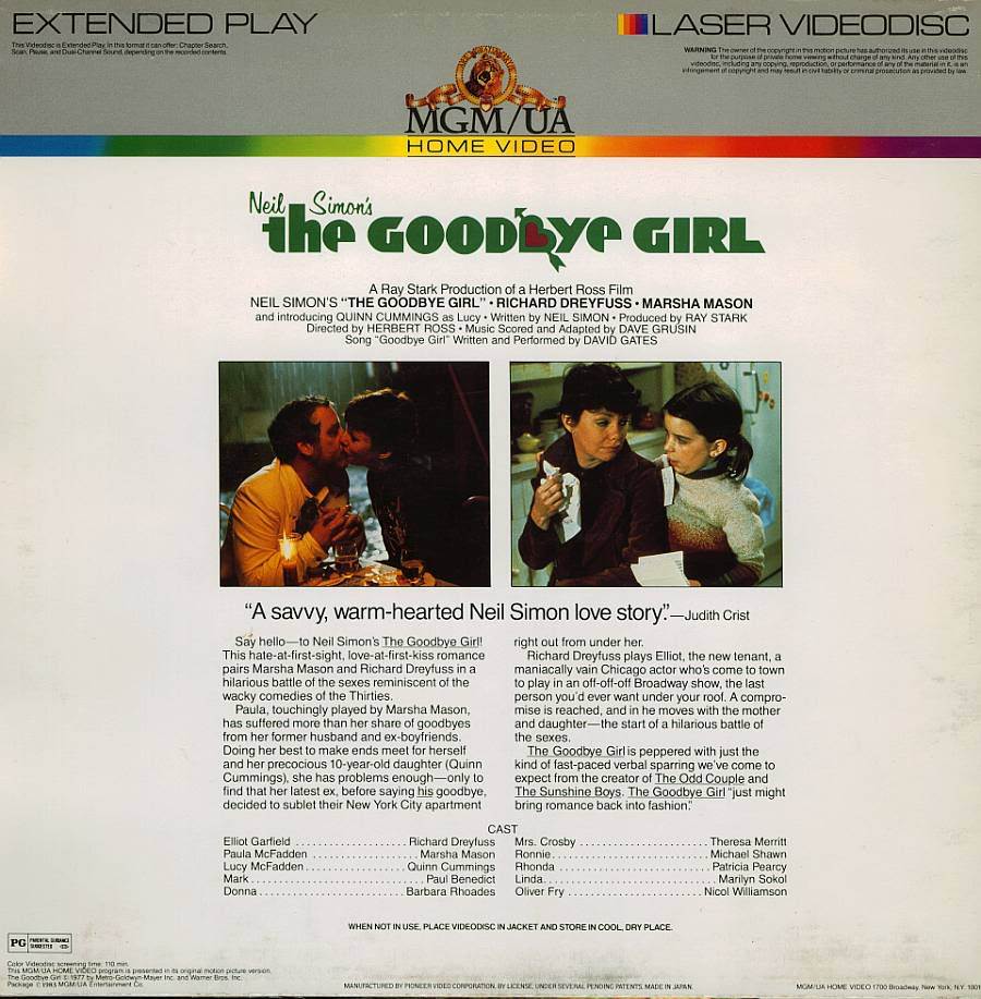 This is a previously viewed LASERDISC of the rare Neil Simon classic romantic comedy THE GOODBYE GIRL , staring: