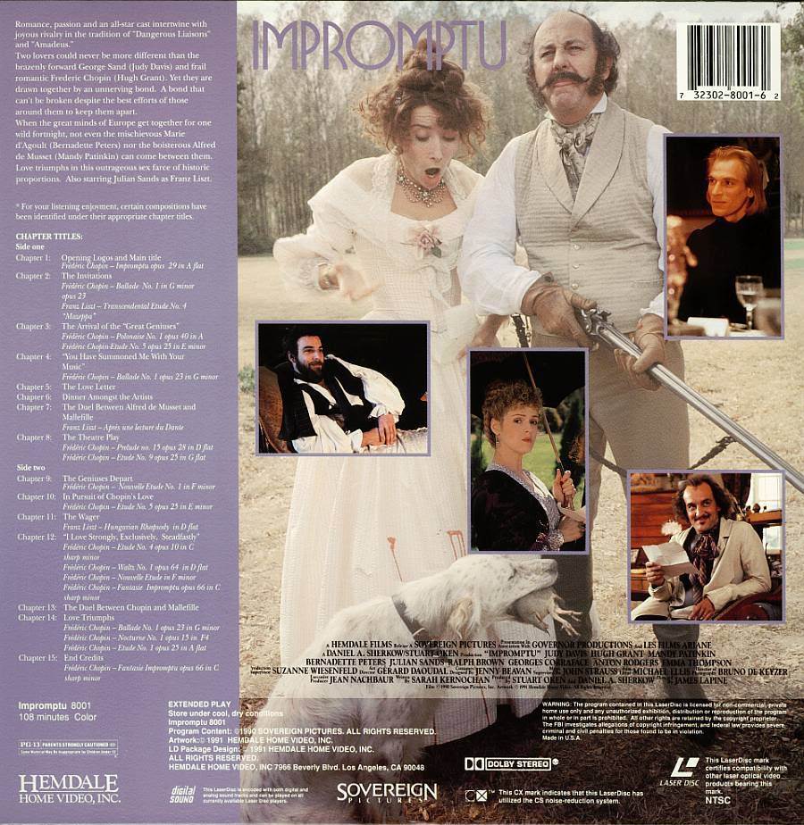 This is a previously viewed LASERDISC of the rare romantic comedy classic IMPROMPTU, staring: