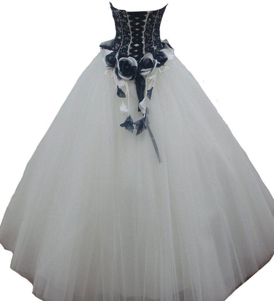 Kivary Plus Size Gothic Ivory and Black Lace Beaded Prom Gowns Wedding Dresses U