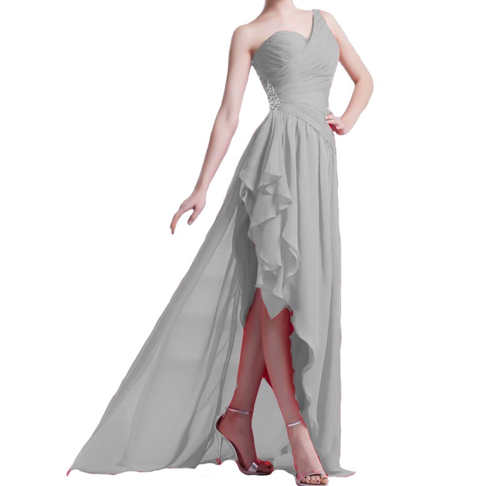 Kivary Women's Chiffon One Shoulder High Low Chiffon Beaded Prom Homecoming Part