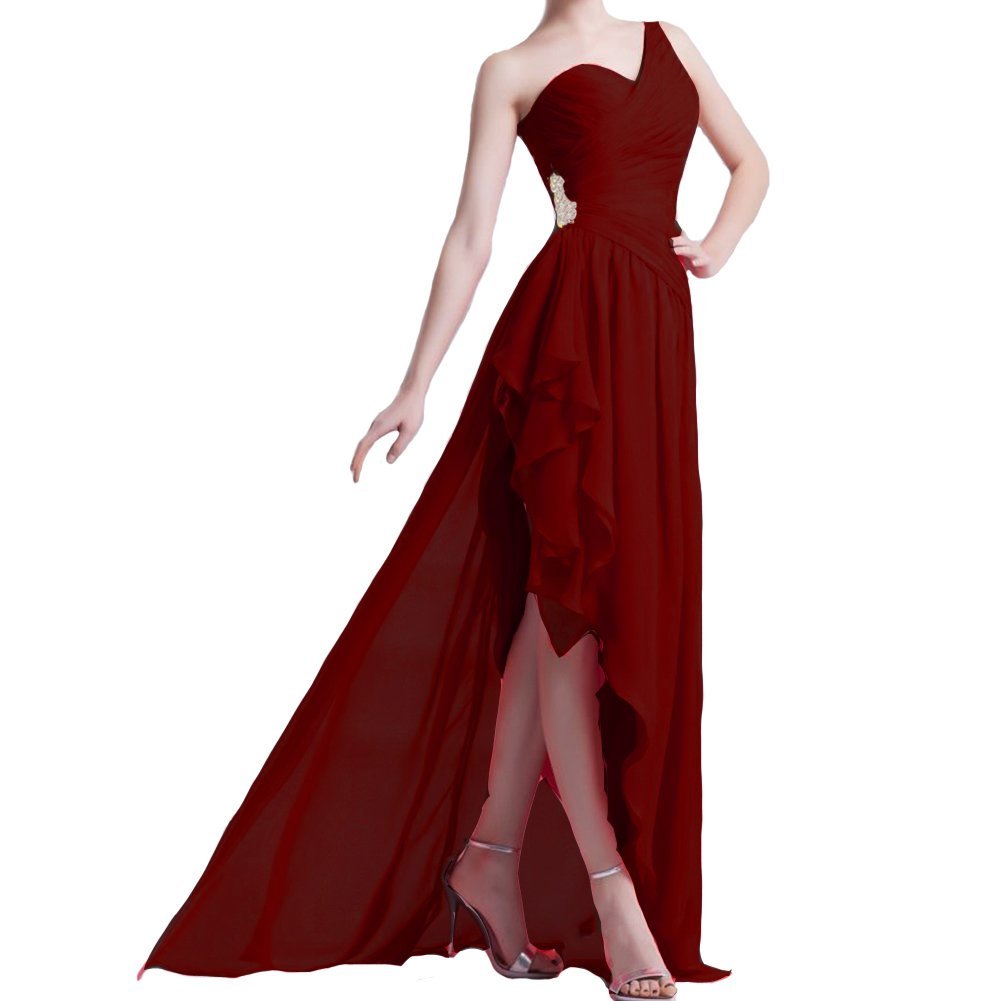 Kivary Women's Chiffon One Shoulder High Low Chiffon Beaded Prom Homecoming Part