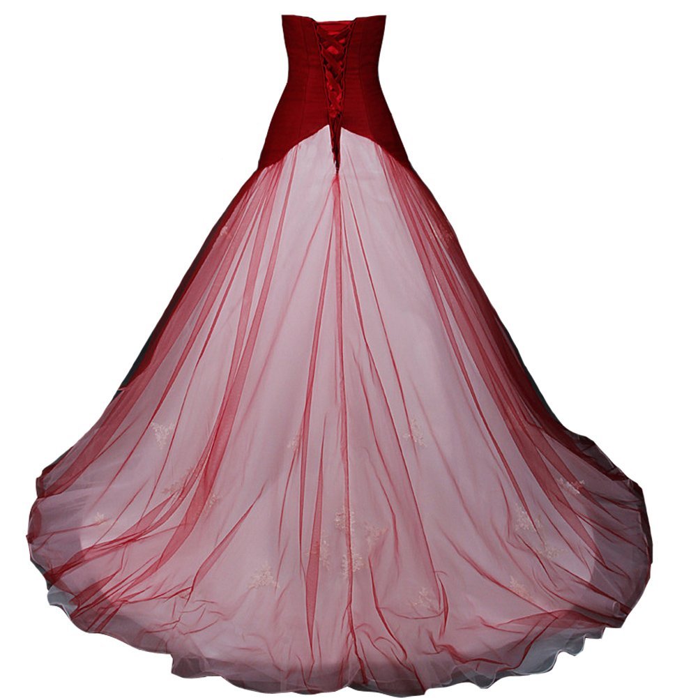 Kivary White and Wine Red Tulle Simple Corset Bridal Wedding Dresses Plus Size U