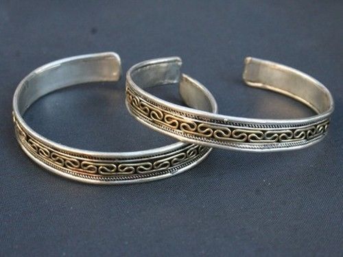 All handmade by the local artists of Kathmandu Nepal in vintage style: delicate brass filigree threaded in the middle, from end to end, with small weavings above and below. It is roughly 6 1/2" from end to end, with width of 12 mm. As always, this cuff bracelet can be gently bent on the sides to adjust (you are buying two cuff bracelets).
