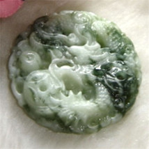 Big Delicately Carved Green w white Roaring Dragon Protect Treasury Jade Pendant