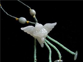 Long Fringe Delicate Carved Jadeite Jade Angel Pendant Necklace-Top Grade!