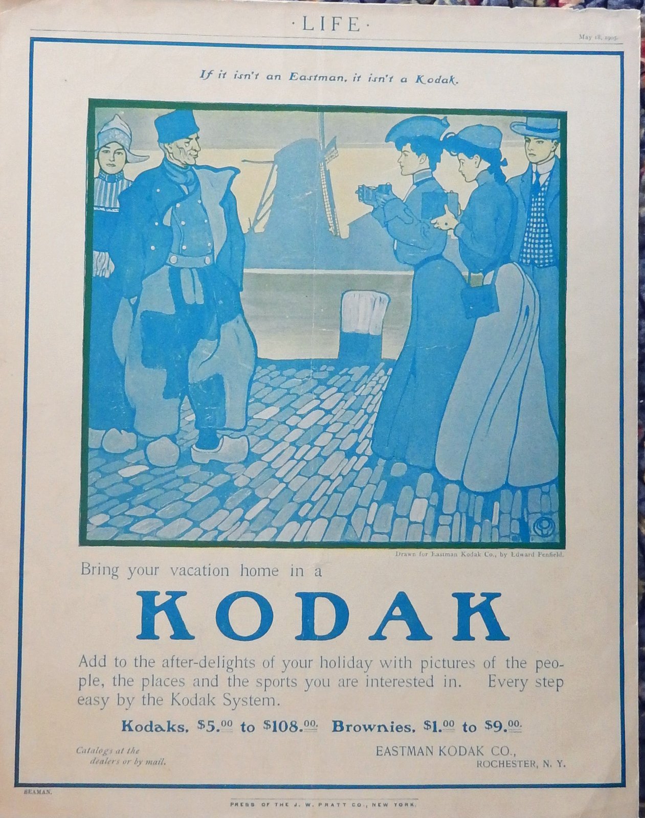 Kodak Camera, bring your vacation home, an actual page taking from 1905 Life mag