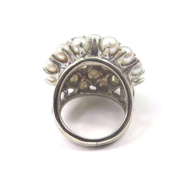 14k White Gold Vintage Women's Cocktail Ring With Diamonds And Pearls