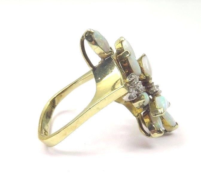14k Yellow Gold Vintage Women's Flower Shape Cocktail Ring With Opal & Diamonds