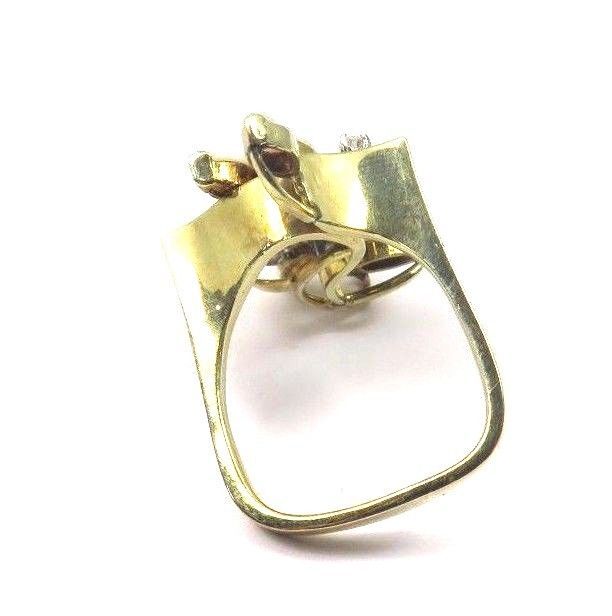 Here we have a beautiful 14k Yellow Gold Vintage Women's Flower Shape Cocktail Ring With Opal Diamonds. Total weight: 8.9g. Diamond Weight: approximately 0.18ct. Measurements: 30 x 18 mm. The ring is a square shape. The perfect gift for your loved one. Comes with a free gift box. Item is vintage and will show normal wear, but in great shape. Buy with confidence, we only sell top quality items. SIZABLE. Thanks for looking and have a great day.