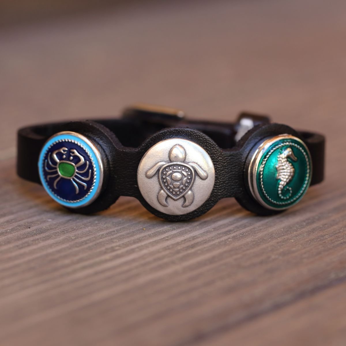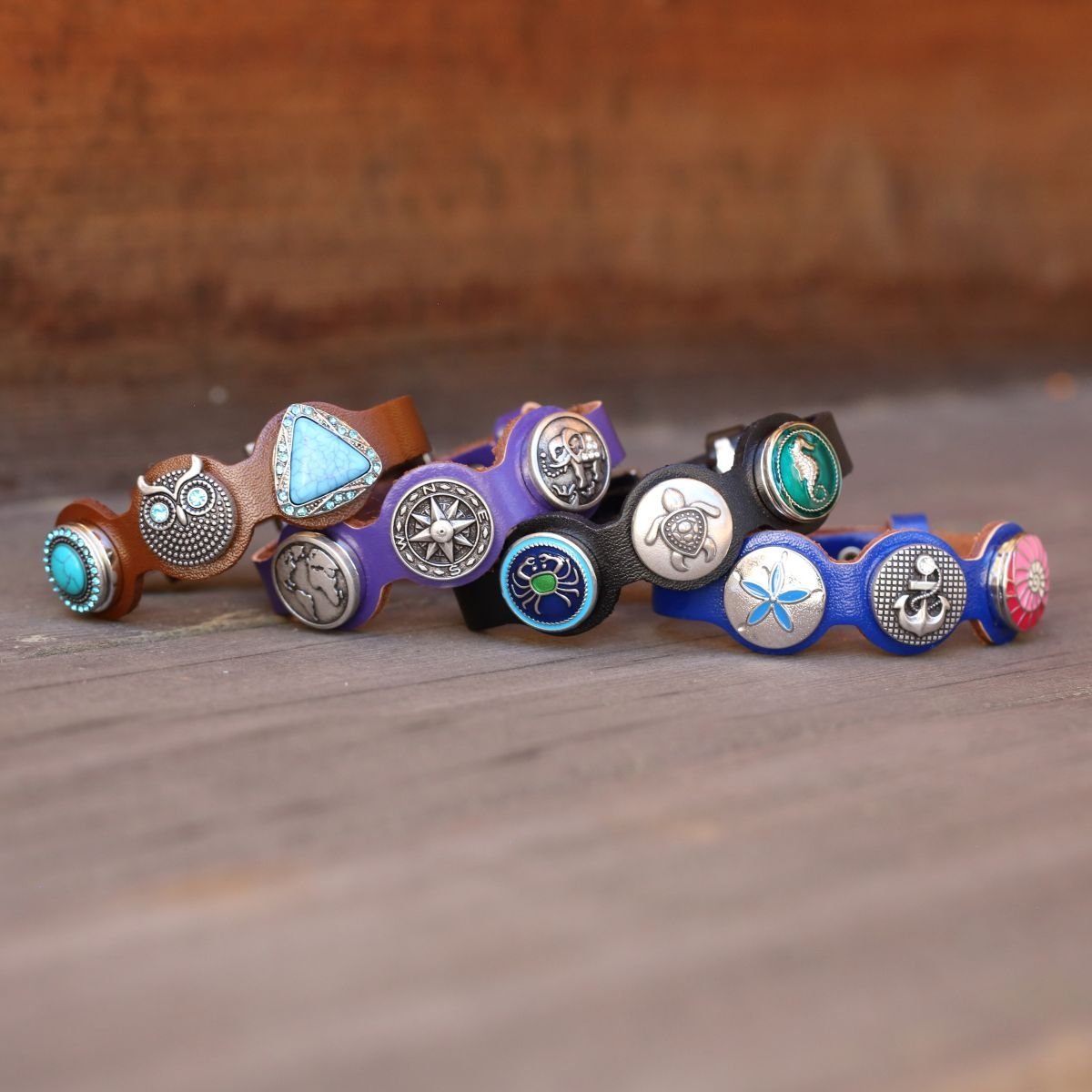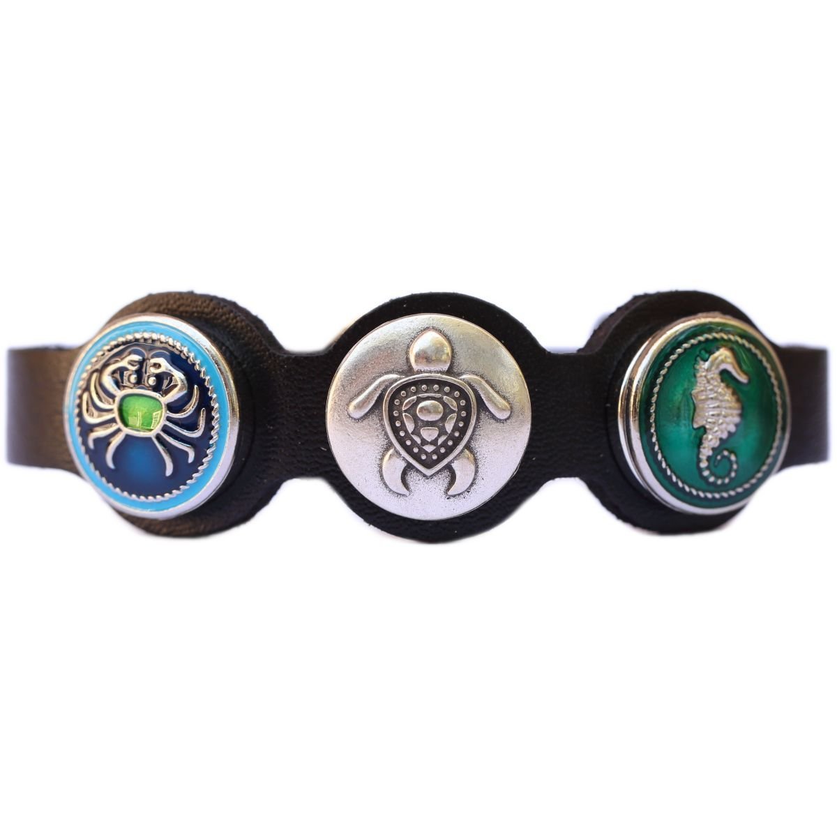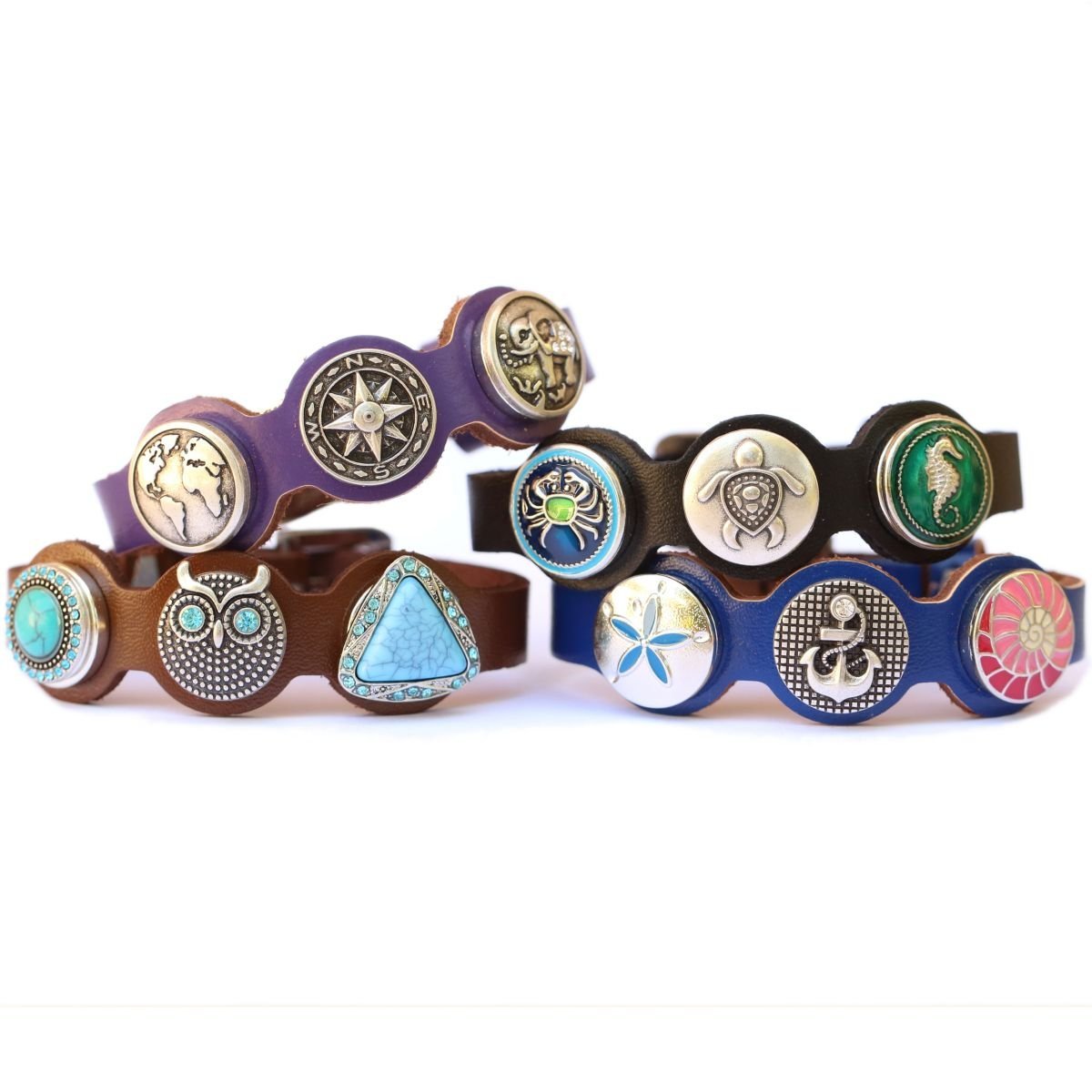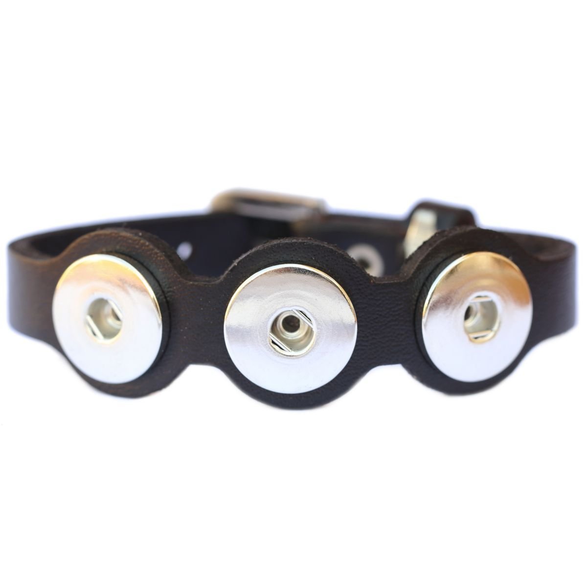 Black Leather Snap Bracelet with Three Snaps. Our standard size snap pieces can be combined with snap charms (sold separately) to create beautiful jewelry. Once you purchase this item you can choose from our many snap charms, or use standard 18mm/20mm snaps from other major brand jewelry.