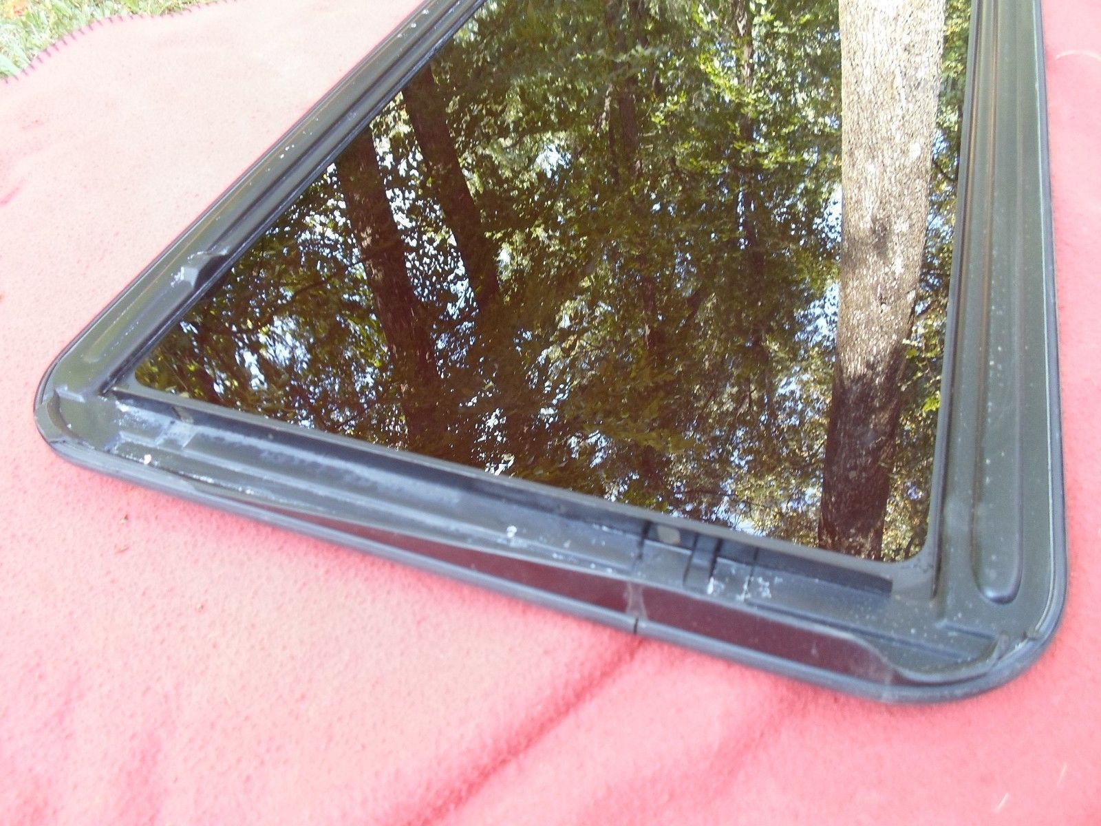2005 Chevy Equinox Sunroof Glass panel. The sunroof is in good used condition. Measurements are 34 3/4" long and 19 1/4" wide. ***This sunroof came on Equinox model year 2005, but please double check your measurements, bolt patterns (2 bolts on this one) and compare to ours to ensure a perfect fit. Chevy used on rare occasions a sunroof with different size dimensions and bolt patterns, that is why it is important to double check. Also watch for aftermarkets, we find alot in the Equinox, if your sunroof switch looks like any in our last picture, you have an aftermarket. Part number 812 716 02 found on the underside. This glass panel was removed from a 2005 Chevy Equinox that had a blown engine so there is no unseen damage on this panel as is found with a majority of sunroof glass panels that are removed from wrecked vehicles. Often times on a wrecked vehicle, the metal trim around the glass, under the seal, will incur slight bends which will make the panel leak soon after. We have been dealing in sunroof glass panels for 20 years now and only sell the panels that come through our shop that are off of vehicles that have not been in major accidents. We also 100% inspect and clean the panels, especially the seals, in an effort to identify any imperfections that may cause issues down the road. The sunroof comes read to bolt in. Please email me with any questions that you may have. Please double check your measurements. Thank you.
