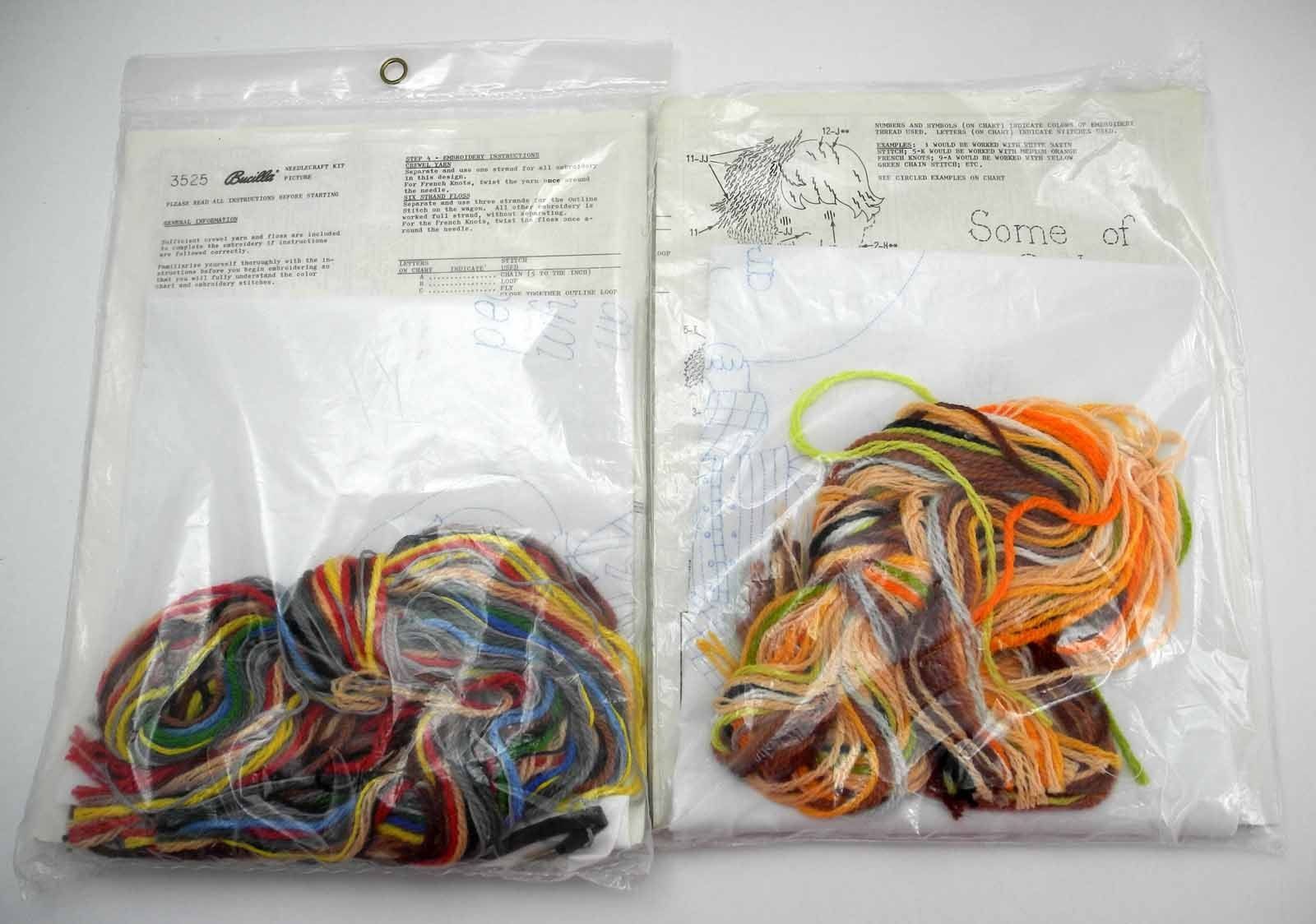 Vintage Bucilla Needlecraft God's Miracles & Smile Sampler Crewel Kits 3523/3525