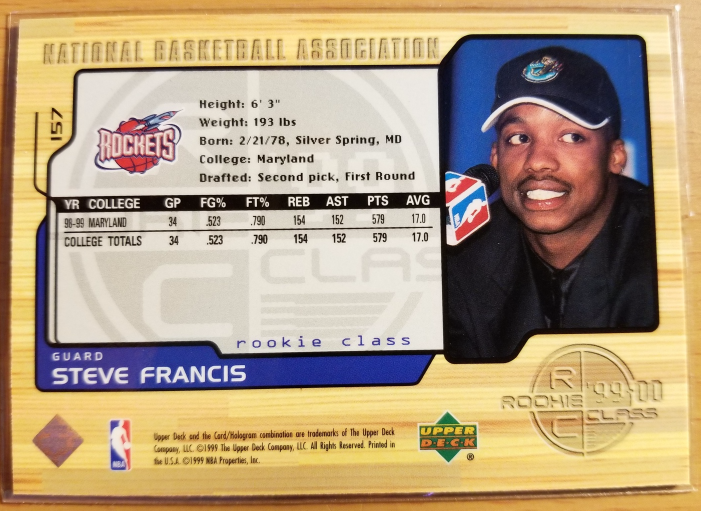 Steve Francis 1999-00 Upper Deck RC #157 Houston Rockets NBA Rookie Franchise