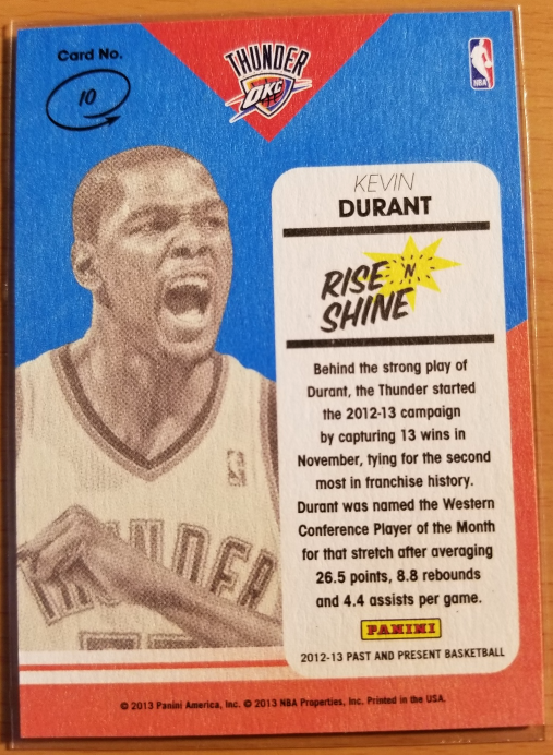Kevin Durant 2012-13 Panini Past & Present Rise N Shine #10 OKC Warriors GSW