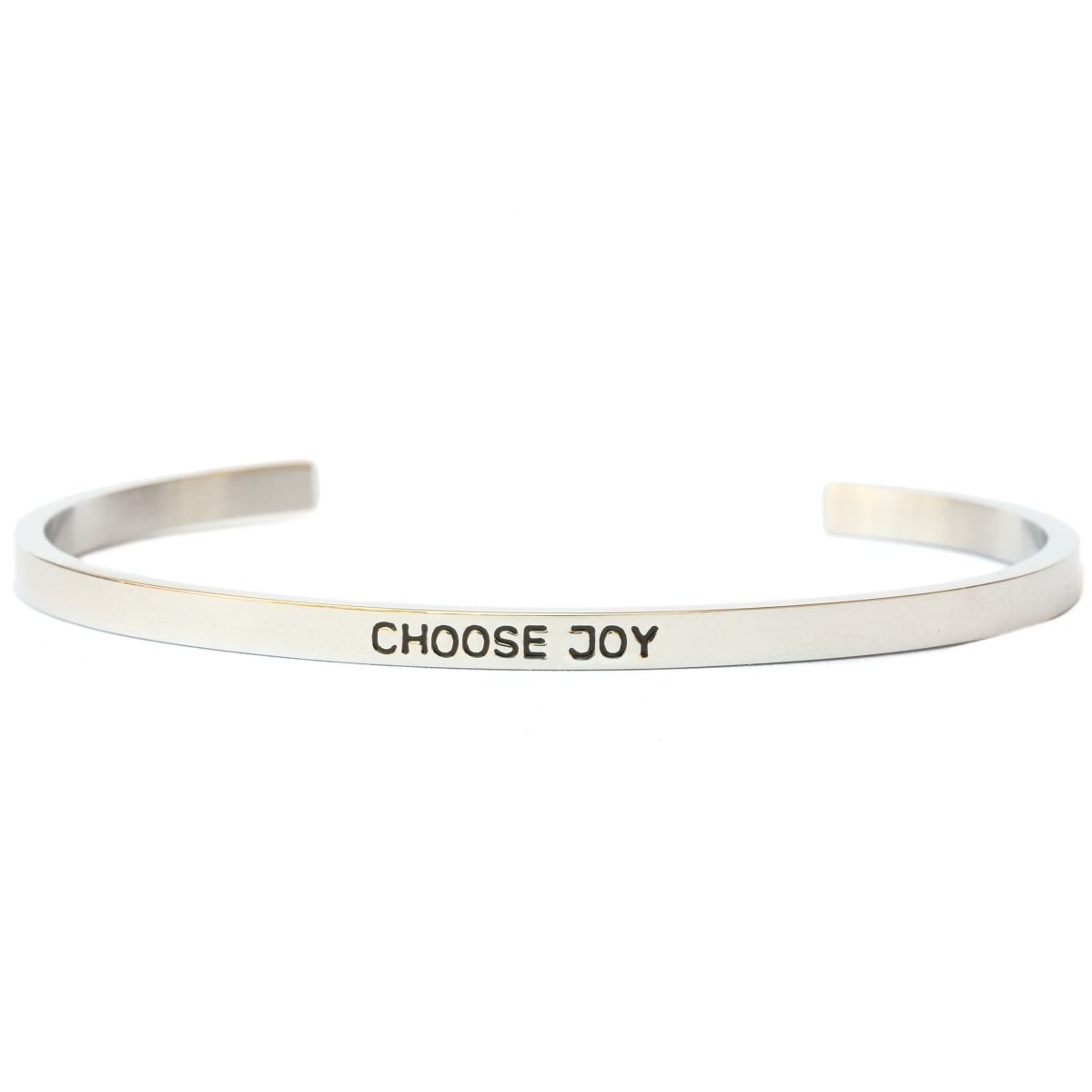 Choose Joy Cuff Bangle Bracelet. Our mantra bangle bracelets look great on their own and can also be stacked with other bracelets to add a layered look.