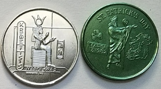 (2) St. Patrick's Day Mardi Gras 1982 Aluminum Tokens: