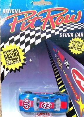 Richard Petty #43 STP 1:64 Pontiac die cast car with a 1992 racing schedule on the back. A 1992 Pit Row Collectible still new in the blister package.
