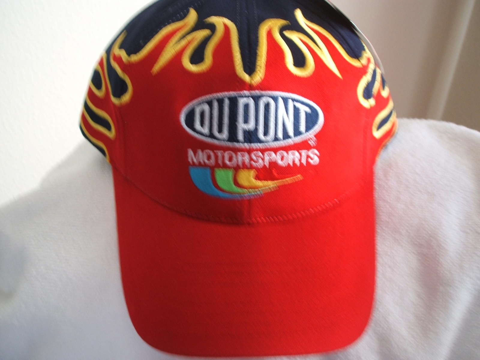 Jeff Gordon, #24 DuPont Motorsports new ball cap with flames on a blue cap .